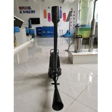 通過潛水泵產生的水流經過噴嘴形成高速水流,在噴嘴周圍形成負壓 吸入空氣,經混合室與水流混合,在喇叭形的擴散管內產生水氣混合流, 高速噴射而出,夾帶許多氣泡的水流在較大面積和深度的水域內渦旋攪 拌,完成曝氣,并且其軸功率不隨潛沒深度的變化而變化,進氣量可以調 節。正因為如此,射流式曝氣機可以在水位變化較大的池中應用
