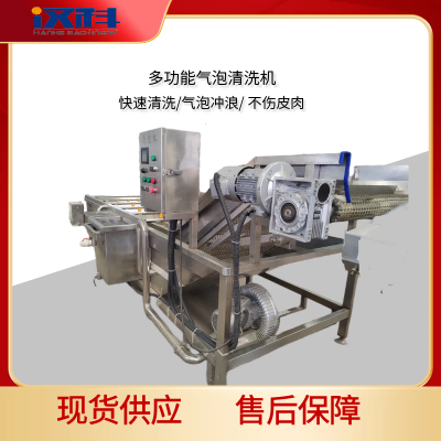 氣泡清洗機是一種利用渦流、氣泡發生、噴淋等多種原理,對物料進行高效清洗的食品加工設備。它特別適用于清洗葉菜類、根莖類蔬菜、水果、水產品(如貝類、魚類)以及中藥材等。其核心工作原理是通過在清洗槽底部產生大量密集的微氣泡,使物料在翻滾、摩擦和氣泡爆破的聯合作用下,剝離表面的泥沙、雜質、農藥殘留及部分毛發、蟲卵等,從而達到潔凈的目的。