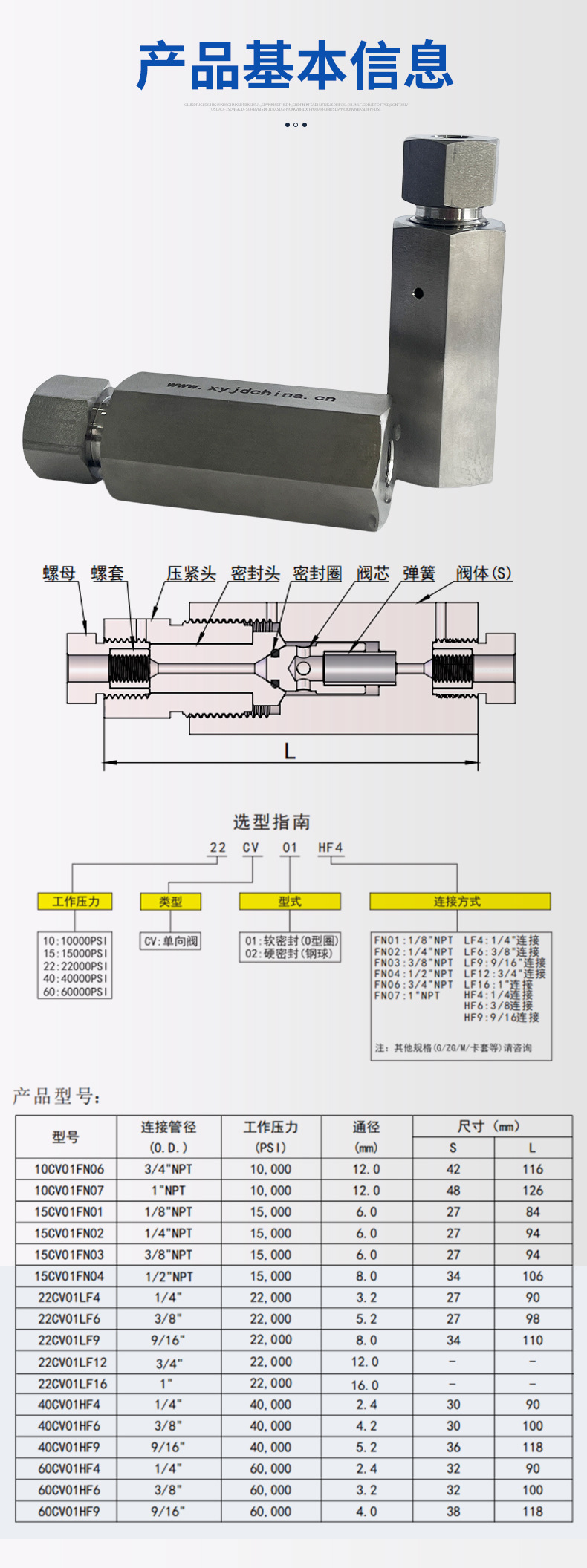 1.工作壓力高,可在高達60000PSI壓力下使用。