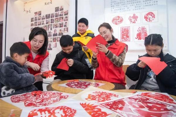 在民俗藝術(shù)博物院,學(xué)習(xí)剪紙技藝,了解剪紙的起源與流變、民俗文化內(nèi)涵;老師講解剪紙的基本類型、剪紙方法,現(xiàn)場示范"折疊剪紙"的過程,講解剪紙的技巧。