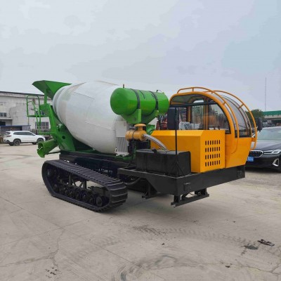 履帶混凝土攪拌運輸車,可作為移動式砂漿攪拌機,我們可以理解為-種可移動式底盤加上一臺混