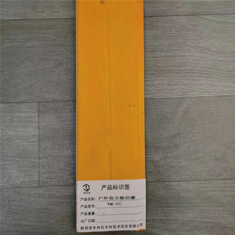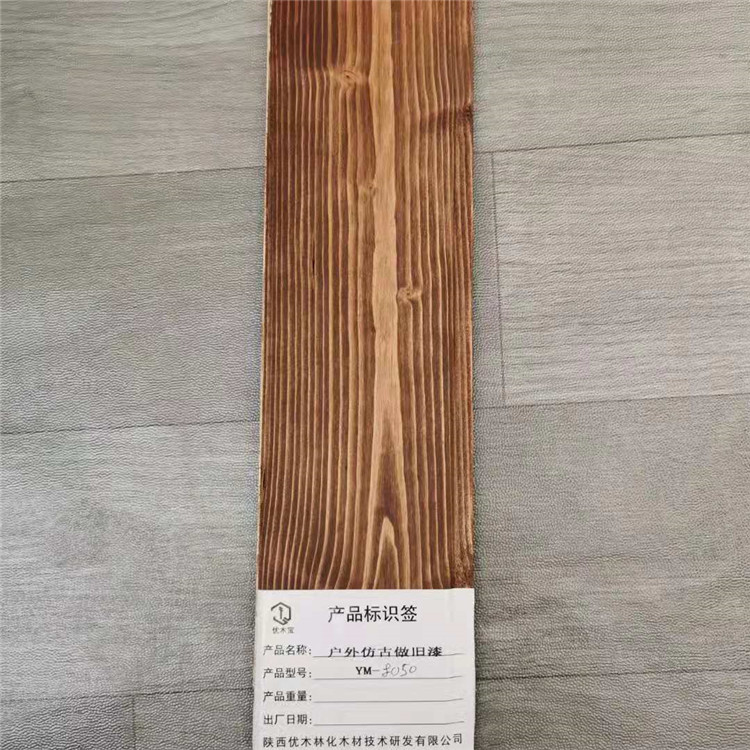 一、適用范圍:優木寶木材做舊劑是一種給裸木或未處理過的木材表面打造出風化的做舊效果。該產品可以和木材中的單寧發生反應,模仿木材自然老化的過程,讓其形成獨特的做舊效果??捎糜谒蟹N類的木材仿古,做舊,古建筑修復,景區木結構房屋,復古裝修,木地板,木家具,餐飲復古風等家裝,不同木材出現不同效果,操作簡單,效果真實,成本低的一種產品,優木寶做舊劑,經常被應用在,桐木,樟子松,輻射松,南方松,杉木,櫸木,橡木,水曲柳,白蠟木,柞木,山核桃,楓木,樺木等木材.