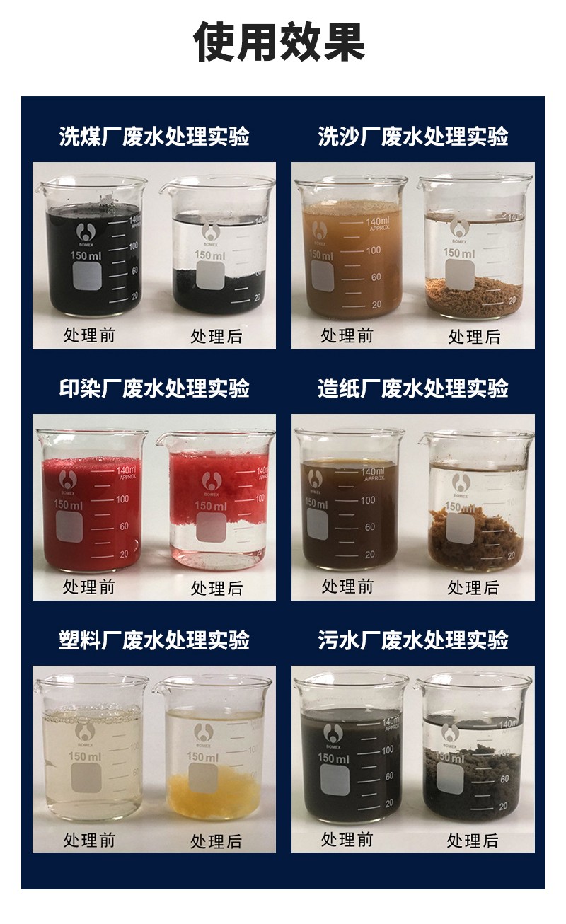 2)可用于帶式、離心、螺旋脫水機的污泥脫水,可以顯著提高生產(chǎn)效率,泥餅的固含量及降低濾出水的固形物含量;