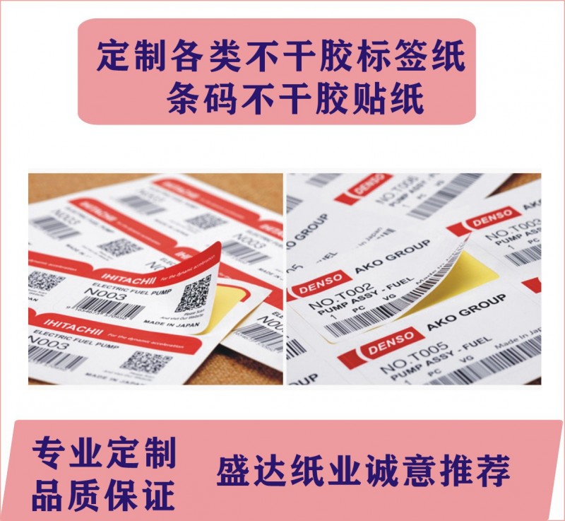 應用不干膠材料有:特光紙、銅版紙、 射膜、PET、PVC、PP合成紙、珠光膜、可移紙、易碎紙、熱敏紙、牛皮紙(材料品牌:艾利、藍泰、富洲)等