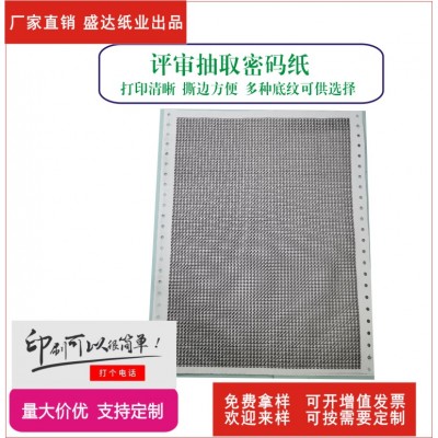 定制評標專家庫專家抽取密碼紙所用紙張為目前國內無碳紙中好的APP原木漿無碳紙,克重配比為佳的上紙48克,下紙80克,這樣更能保證打印清晰,連續流暢不卡紙采用直淋式涂布的無碳紙顯色好,打印清楚,走紙流暢,迎光看不到內頁內容。不漏字,不開膠。歡迎來樣來圖定制產品!