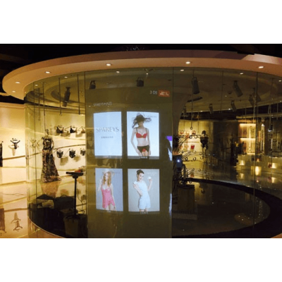1: 全息透明膜透明膜并非完全透明的,透明度約90%,主要用于櫥窗展示區貼于透明玻璃上。投影時室內室外均能看到投影圖像,不放投影時外面行人或路人能看到室內物品或擺設。