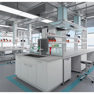 家具位置:設有中央臺、邊臺、試劑柜、器皿柜、水盤柜和冰箱等實驗臺柜,實驗家具應選用耐酸堿、耐有機溶劑材料,并根據空間大小合理布局,盡量做到操作方便,以人為本。