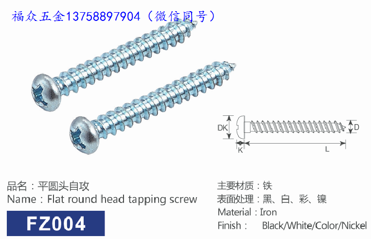 更新信息 快采購網供應商鷹潭福眾五金制品(集團)股份有限公司供應平圓頭自攻螺絲釘,為您提供詳細的產品報價、參數、圖片等商品信息,本產品于2023-06-28 21:31更新,主要更新內容為:產品類別、產品參數、產品價格、產品圖片等信息。如需進一步了解平圓頭自攻螺絲釘詳細信息,請與廠家直接聯系,并說明是在快采購網看到這條商機的。
