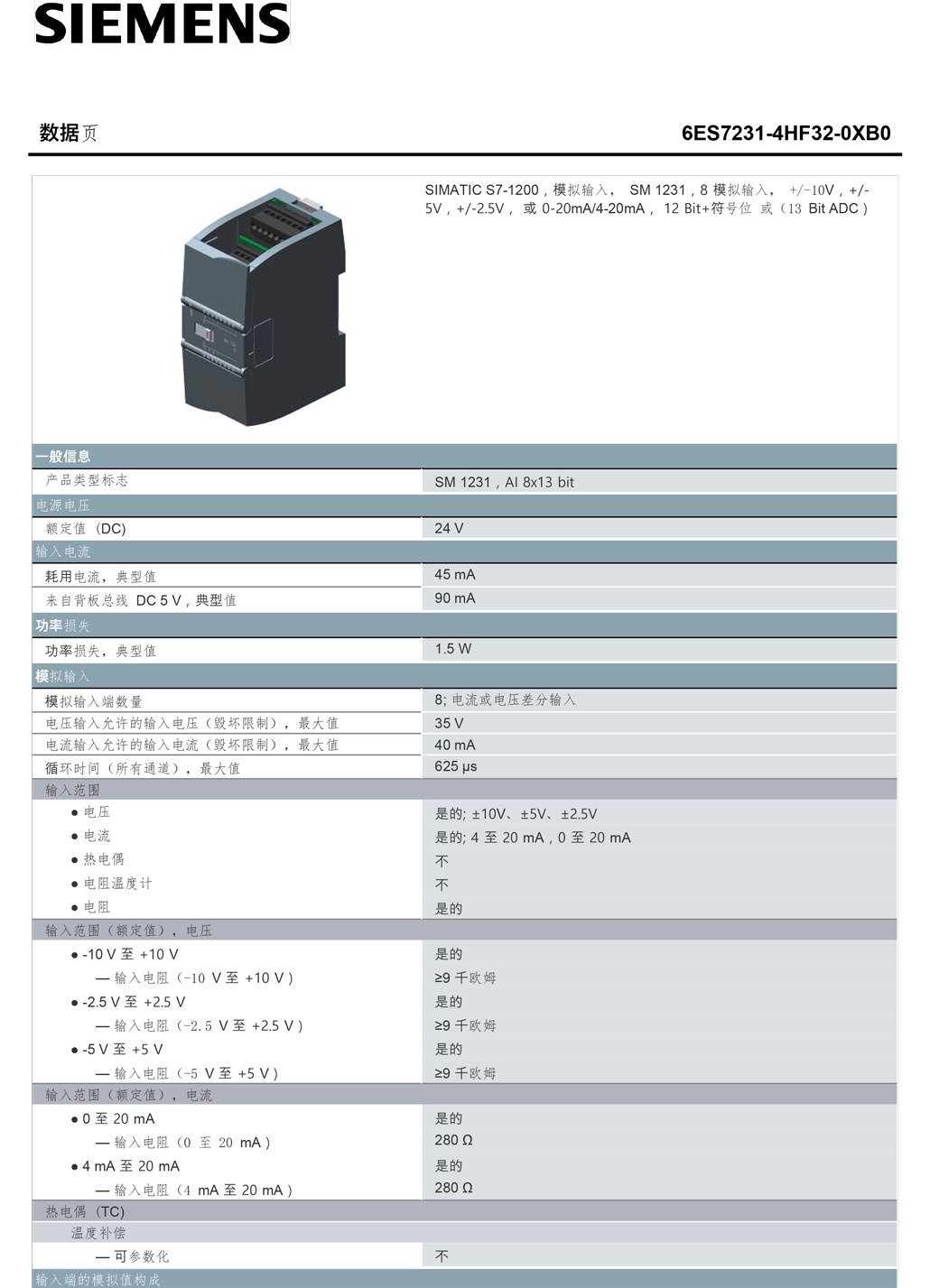 供應全新原裝西門子6ES7231-4HF32-0XB0 S7-1200系列 SM 1231 8模擬輸入