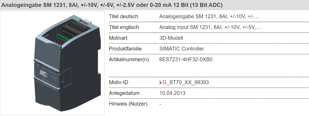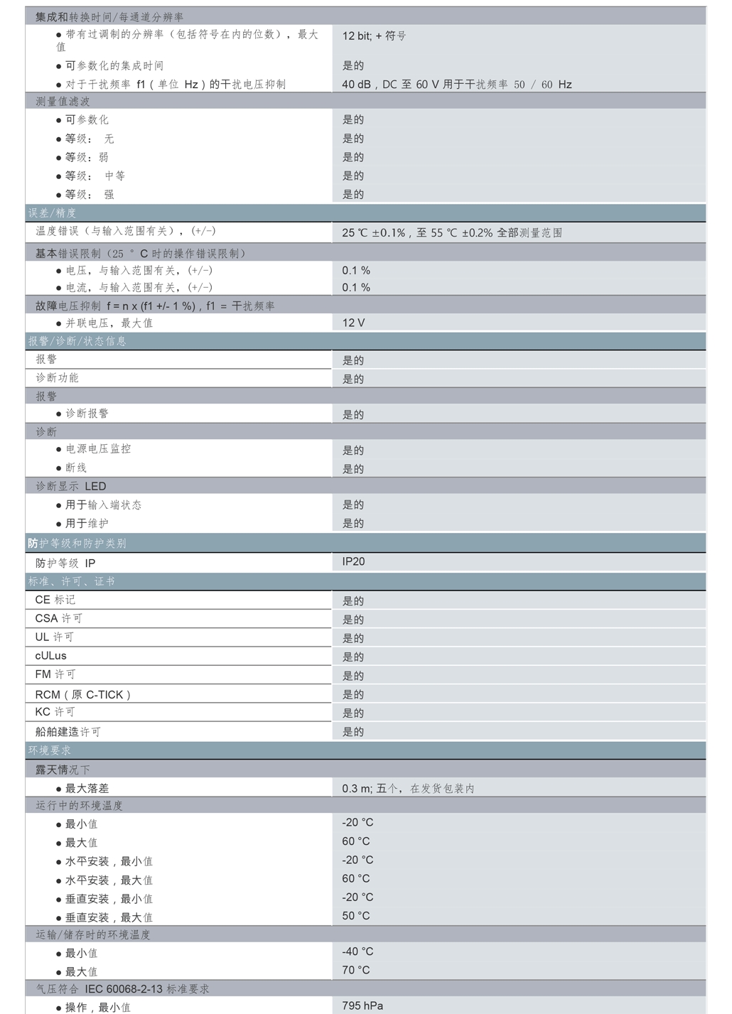 SIMATIC S7-1200,模擬輸入, SM 1231,8 模擬輸入, +/-10V,+/-5V,+/-2.5V, 或 0-20mA/4-20mA, 12 Bit+符號位 或(13 Bit ADC)