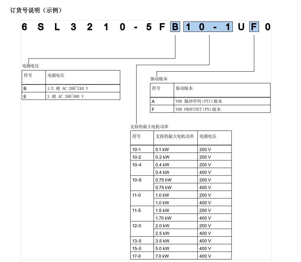 根據電機型號選擇匹配的驅動器。電機與驅動器對應關系如圖2-1所示。SIMOTICS V90技術數據可參考樣本14-16頁內容。