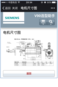 在圖3-5電機選擇結果界面中點擊“選擇驅動器”按鈕進入到驅動器選擇結果界面查看所選電機對應V90驅動器的信息,如圖3-7所示。點擊“查看尺寸圖”可以查看V90驅動器的尺寸信息。