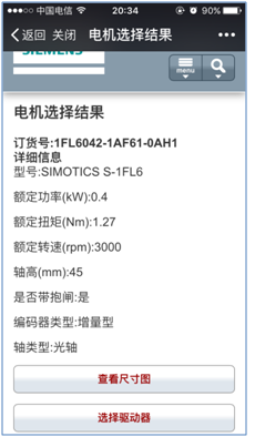 也可以直接選擇所需電機的訂貨號,訂貨號所代表的電機信息會在頁面中顯示。如圖3-4所示。確定電機訂貨號后點擊“選擇”按鈕進入圖3-5界面。