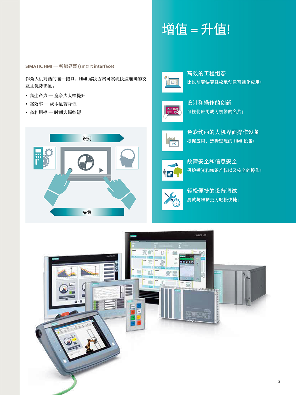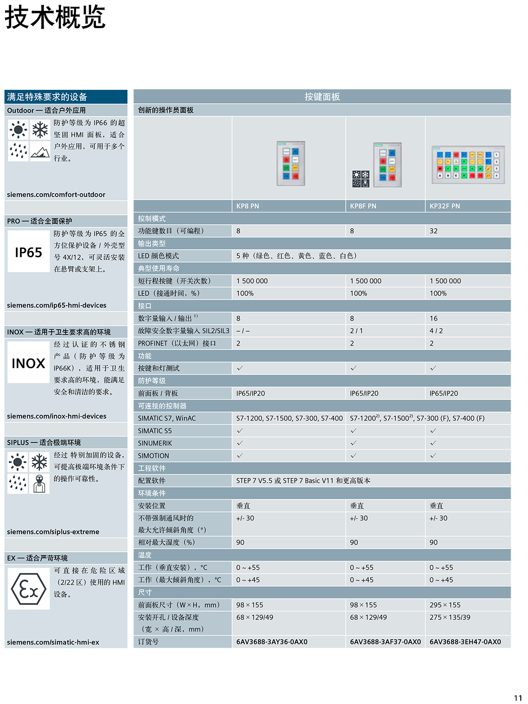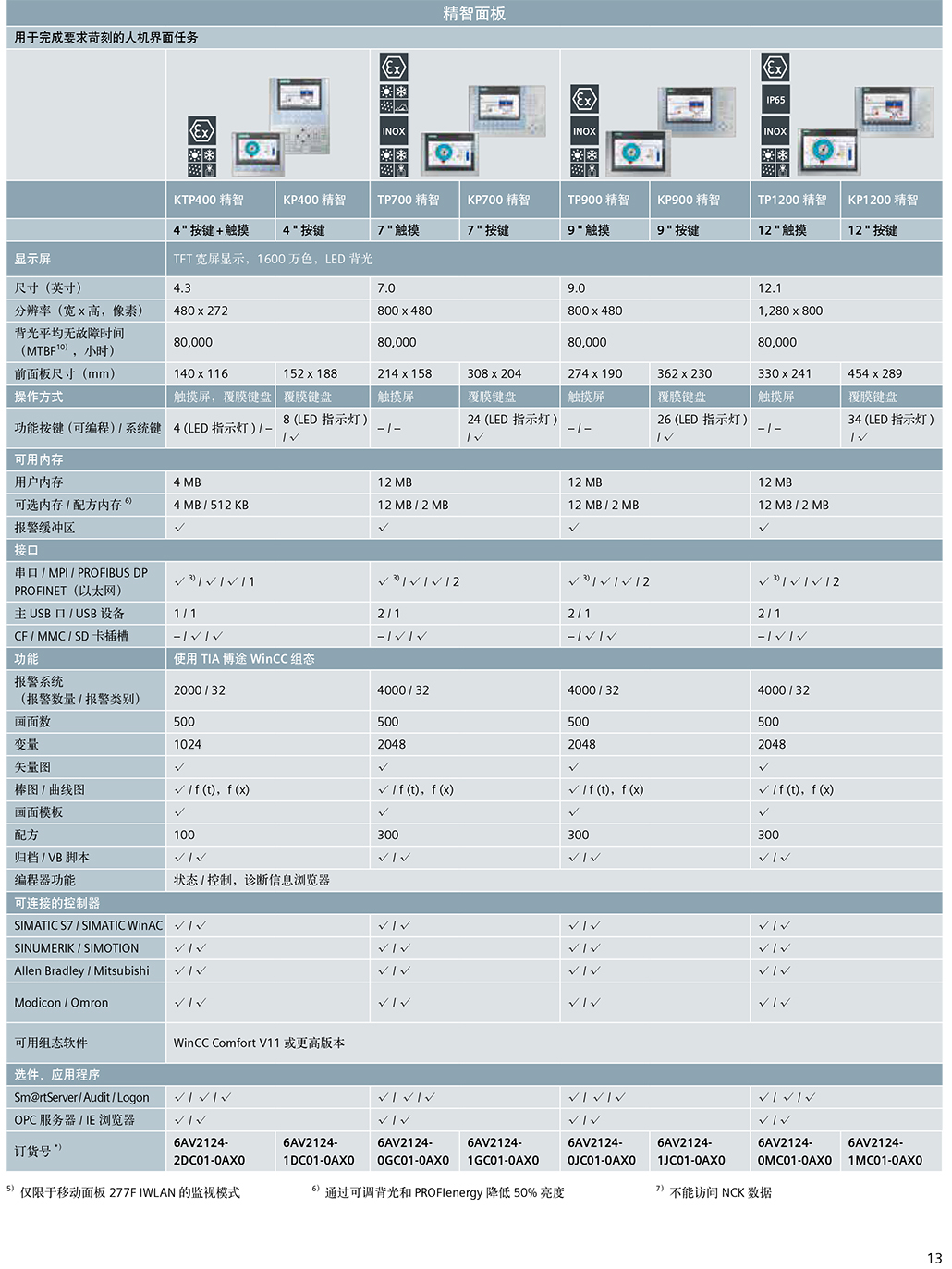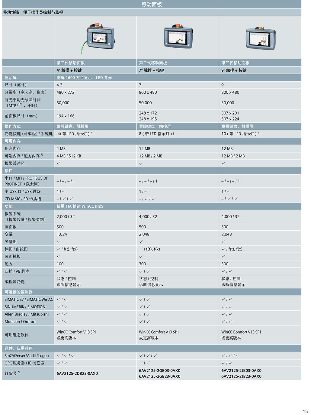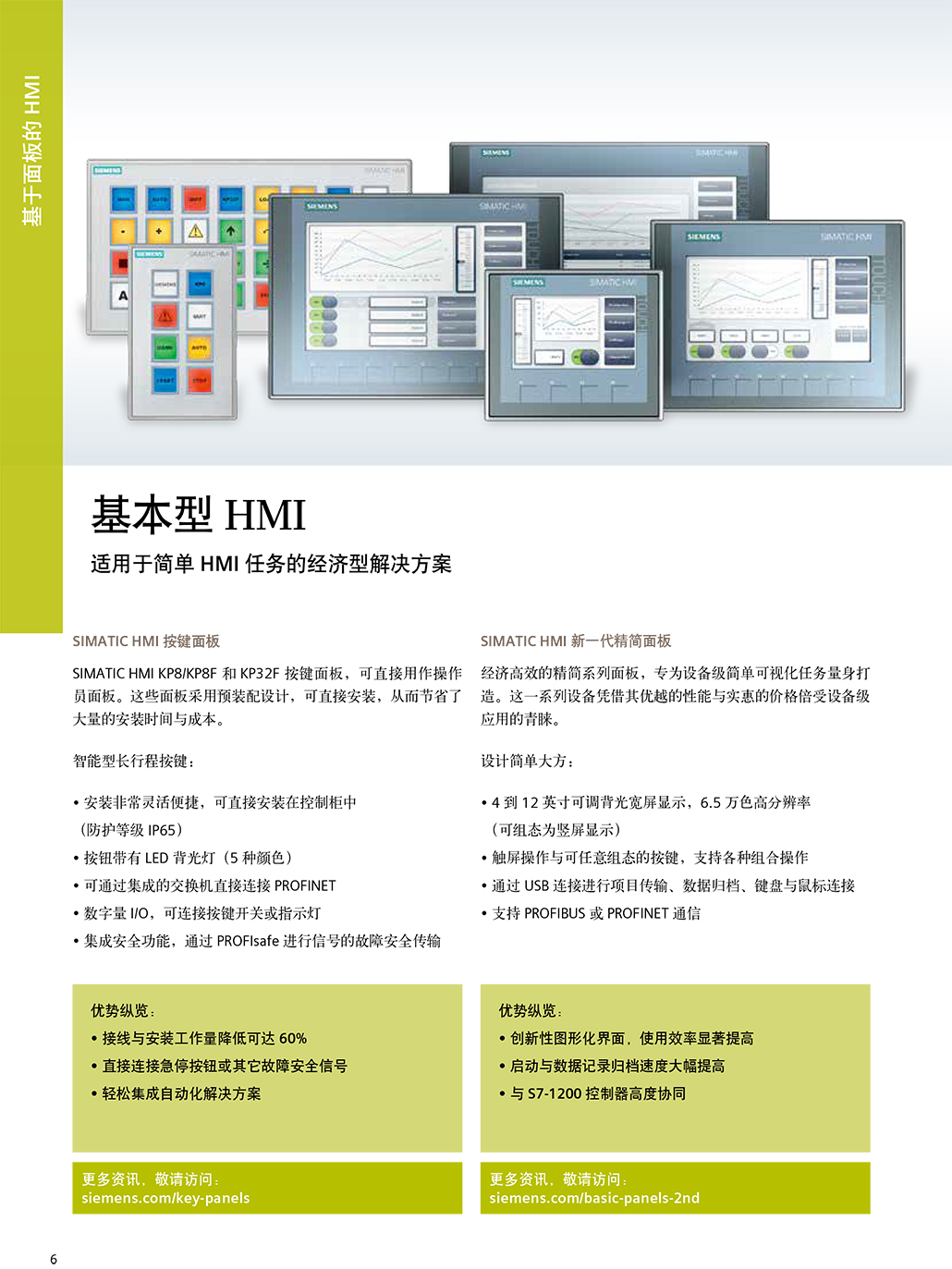 適用于不太復雜的可視化應用;所有顯示屏尺寸具有統一的功能;顯示屏具有觸摸功能,可實現直觀的操作員控制;按鍵可任意配置,并具有觸覺反饋;只有一種通信接口,PROFIBUS或PROFINET(LAN)接口;支持多種通信協議,PROFIBUS或PROFINET以及發協議。