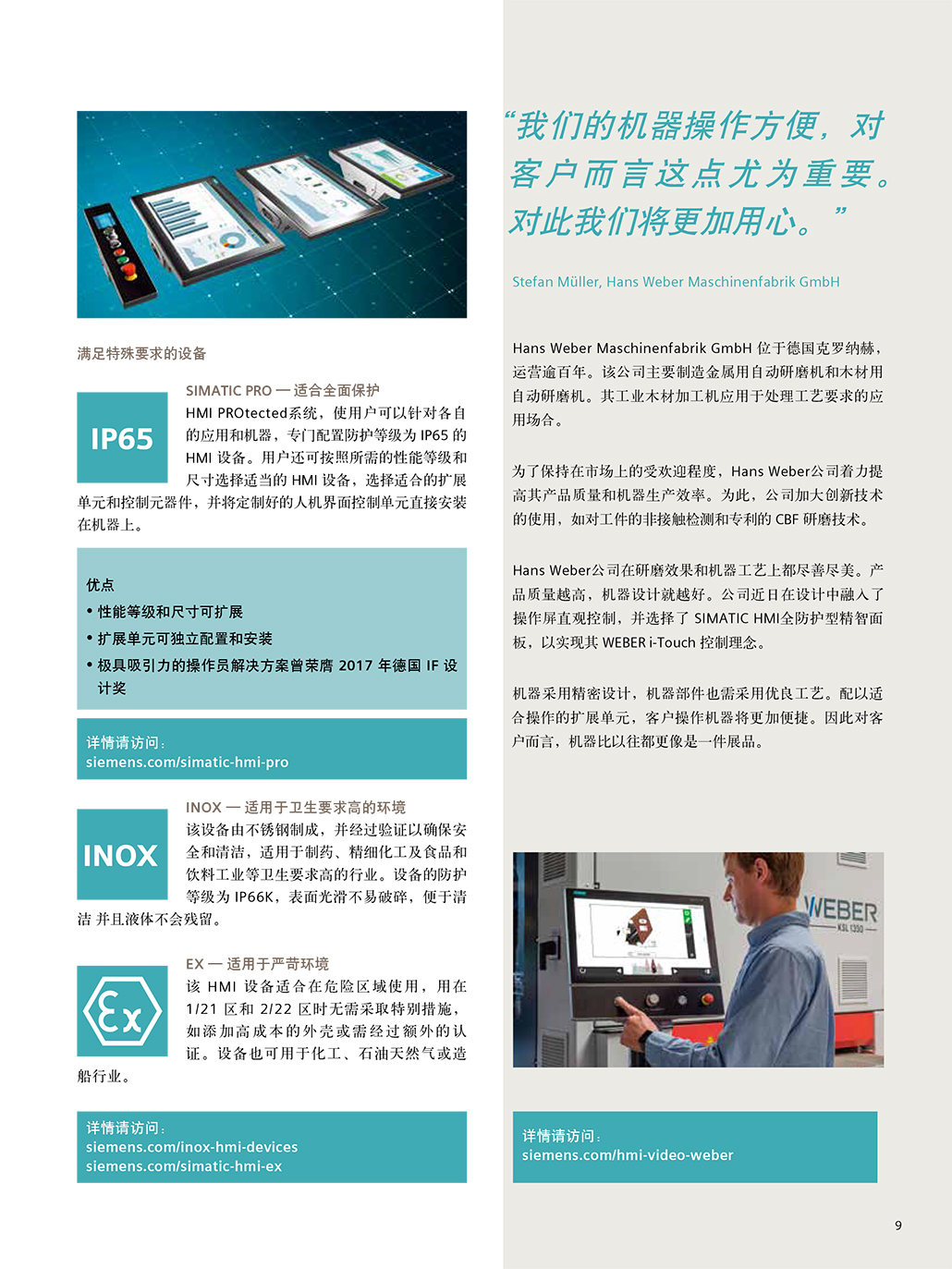 1、我國大部分地區的室外溫度在-30oC~50oC,標準人機界面無法滿足環境溫度的要求,而西門子hmi人機界面采用防紫外線材料,防護等級達IP66,是冷藏間、船舶和石油天然氣行業的理想之選。全新的戶外型精智面板工作環境溫度范圍為-30oC~60oC,幾乎能應用于任何環境和行業。