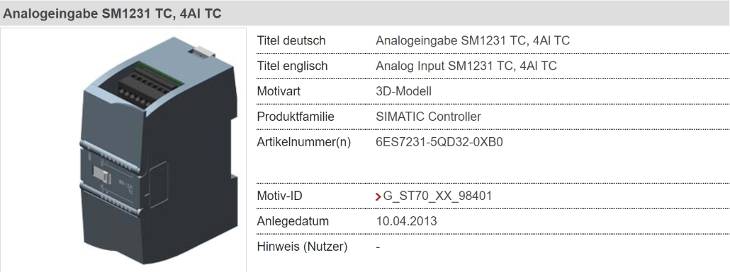 SIMATIC S7-1200,模擬輸入, SM 1231 TC,熱電偶 4 模擬輸入