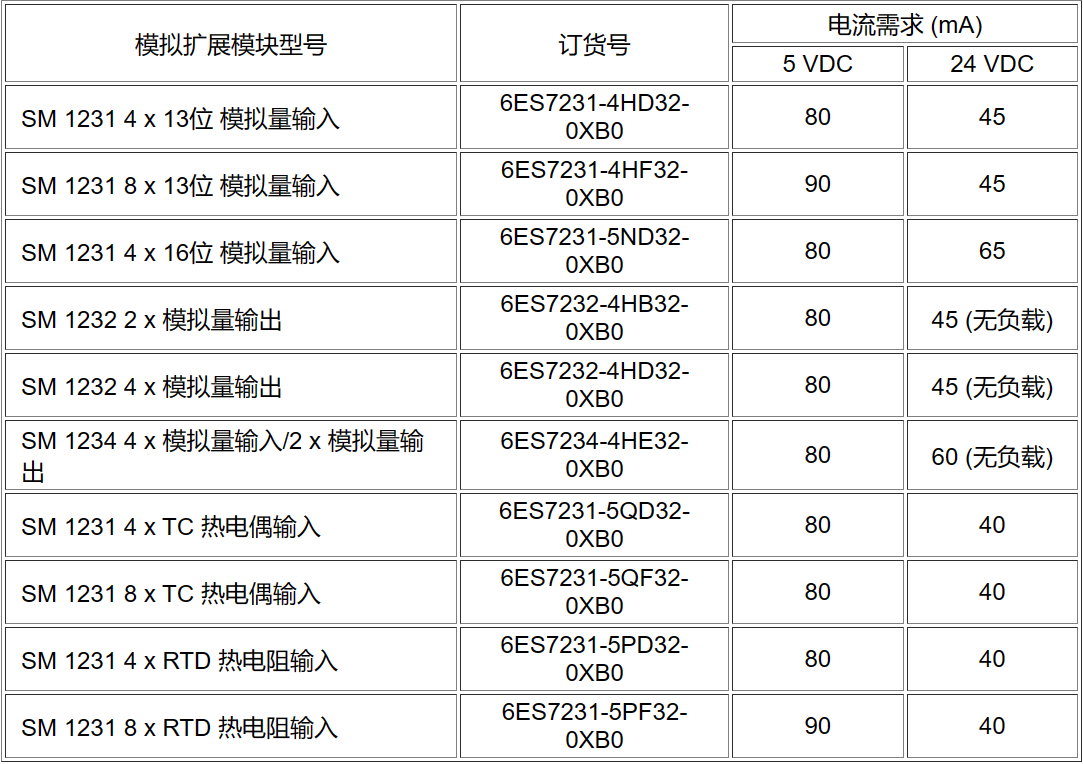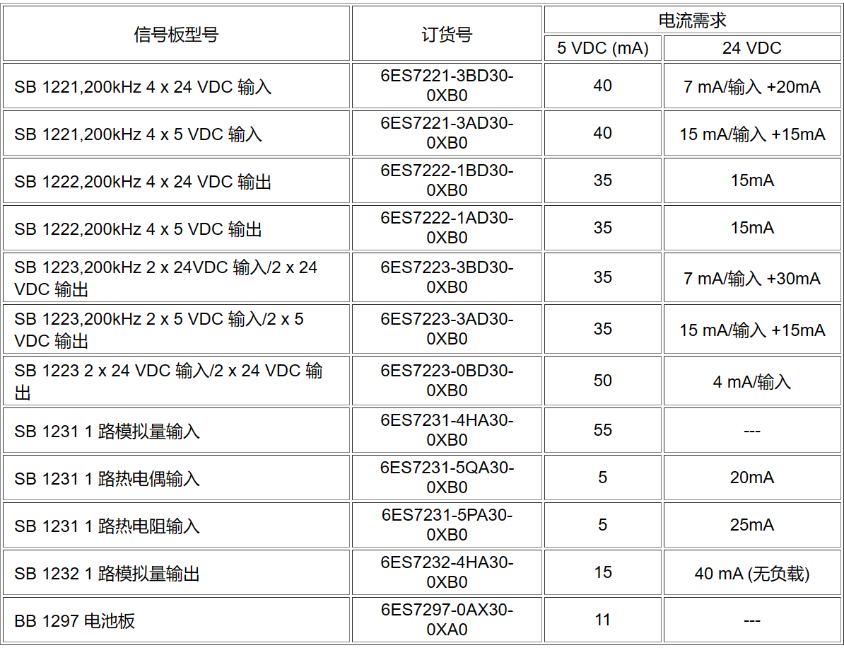 5VDC電源需求請參考S7-1200 PLC電源需求與計算,其它影響因素請參考如下表1 。