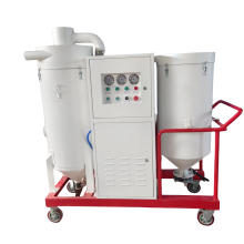 該設備采用壓縮空氣做動力,將磨料高速噴射到待處理表面,經過磨料沖擊,把工件表面銹污、型砂、黑皮、漆皮、氧化皮等雜物剝落清理還原金屬或非金屬工件本色,表面得到工藝要求的清潔度和粗糙度,通過砂塵分離系統將砂料和粉塵自動分選分離,分選出來的磨料繼續循環使用,粉塵與銹污、型砂收入集塵桶。在手把開關控制下,設備噴砂、回收、沙塵分離、砂料循環、粉塵過濾等所有工作“一氣呵成”。