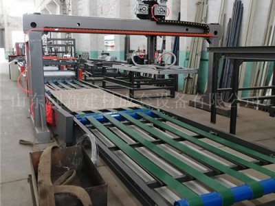 1復合通風管生產線采用雙驅動,二次布料,二次復壓的特種工藝,利用鎂質無機膠凝材料、農業廢棄物、珍珠巖粉等材料,經攪拌混合均勻后,常溫成型,生產各種規格的雙面輕質保溫通風管道。設備自動化程度高,勞動強度低,工藝簡單,具有自動鋪布、自動上料、傳送準確、運行平穩、無噪音等特點。產品厚薄均勻,粘結強度高。