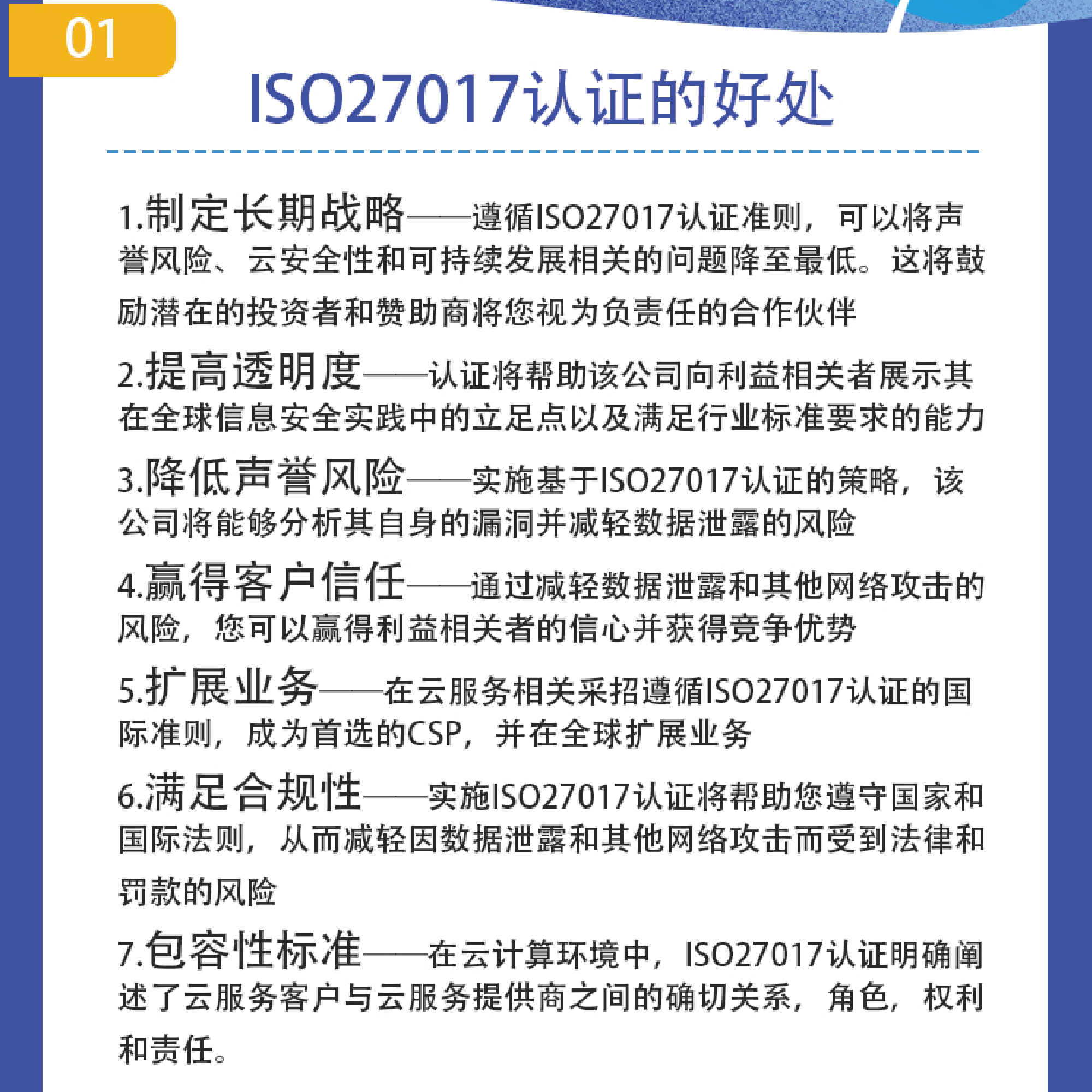 云服務信息安全管理體系認證可以給您的企業帶來以下好處: