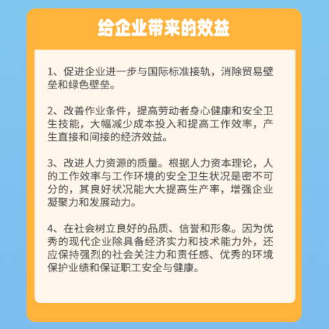 健康職業管理體系認證是一種證明企業具備提供健康職業環境和服務的能力的認證,它可以幫助企業保護員工的身心健康,預防和減少工傷和職業病的發生,提高員工的工作滿意度和效率,增強企業的社會責任和競爭力。