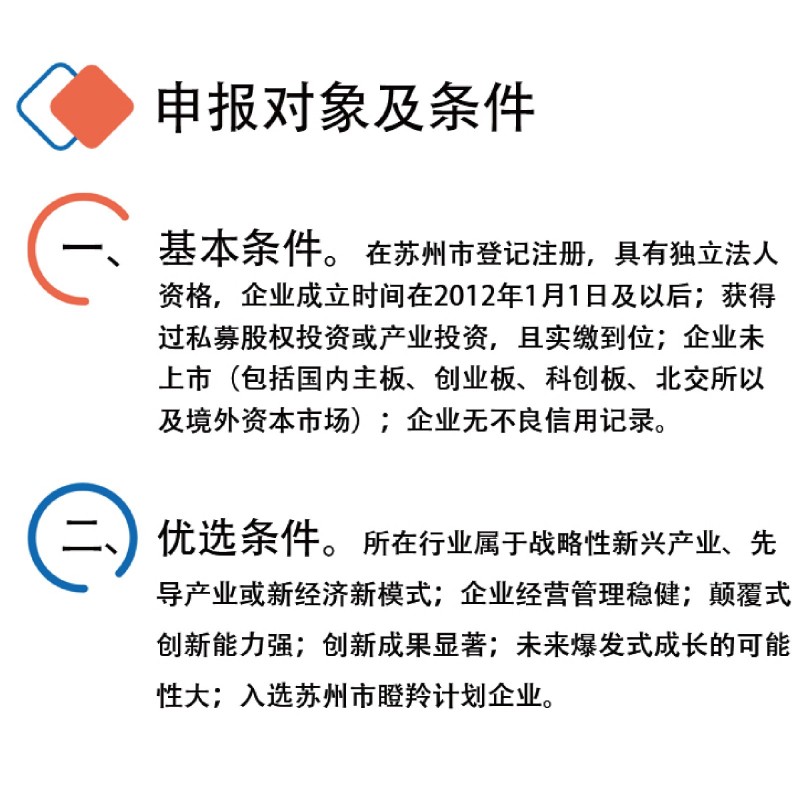 · 在蘇州市登記注冊,具有獨立法人資格,企業成立時間在2012年1月1日及以后;