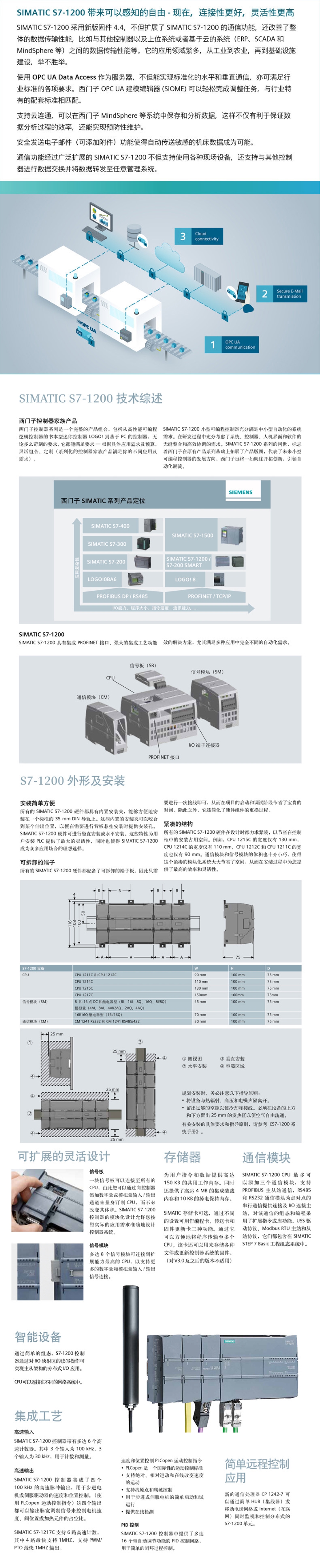 西門子PLC S7-1200的硬件設計緊湊,相對于其他系列的PLC,它的CPU控制單元設計小巧,為用戶節省了大量的空間。例如CPU1212C型號,寬度只有90mm。這種緊湊的模塊化設計方式為用戶帶來了靈活性,并且易于安裝,節約了控制柜的空間和成本;