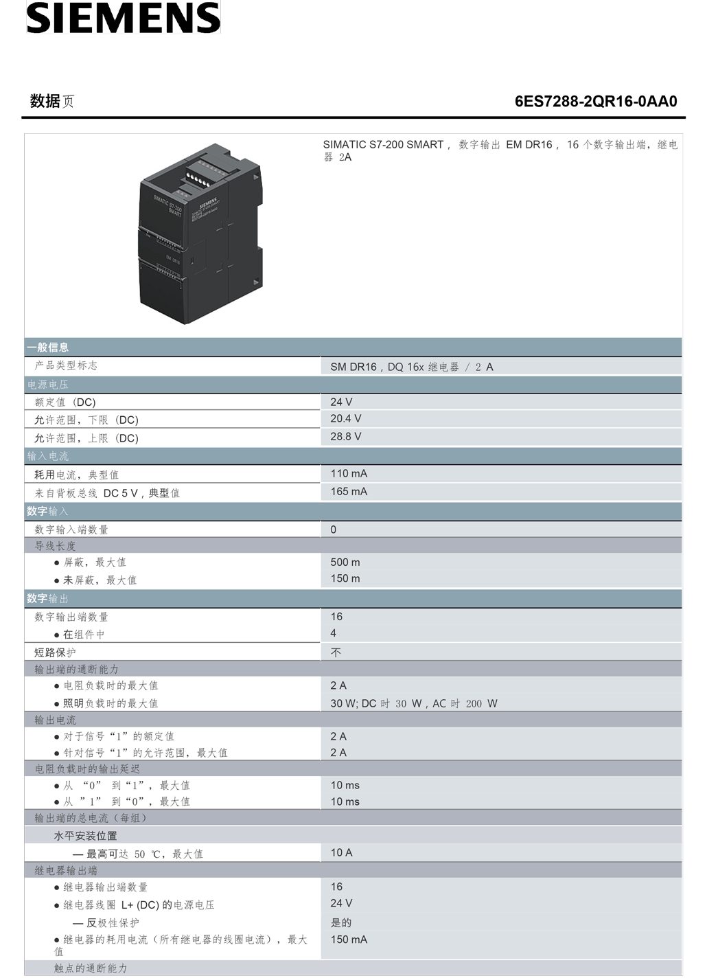 更新信息 快采購網供應商上海絢略自動化有限公司供應供應全新原西門子6ES7288-2QR16-0AA0 16個數字輸出 EM DR16,為您提供詳細的產品報價、參數、圖片等商品信息,本產品于2023-07-19 11:06更新,主要更新內容為:產品類別、產品參數、產品價格、產品圖片等信息。如需進一步了解供應全新原西門子6ES7288-2QR16-0AA0 16個數字輸出 EM DR16詳細信息,請與廠家直接聯系,并說明是在快采購網看到這條商機的。