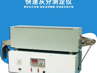 該儀器是一種新型的測定煤炭或其它可燃物質灰分含量的設備。將被測試樣放在傳送鏈條上,隨鏈條進入高溫區燃燒,然后送出爐膛。由于試樣是緩慢進入高溫區的,因此避免了試樣的爆燃。另外穿傳送鏈速度無級可調,可根據試樣的要求改變灰化時間。