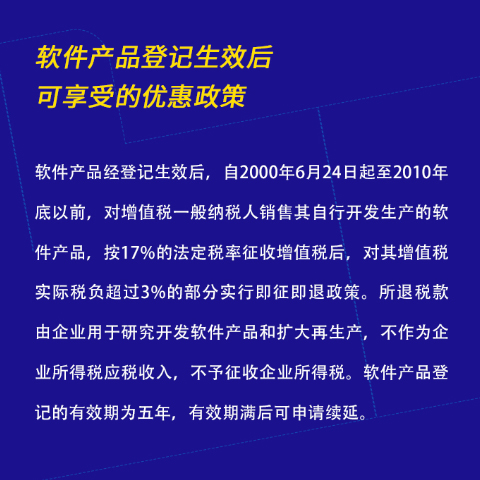 軟件產品登記后,對增值稅一般納稅人銷售其自行開發生產的軟件產品,按17%的法定稅率征收后,對其增值稅實際稅負超過3%的部分實行即征即退政策;