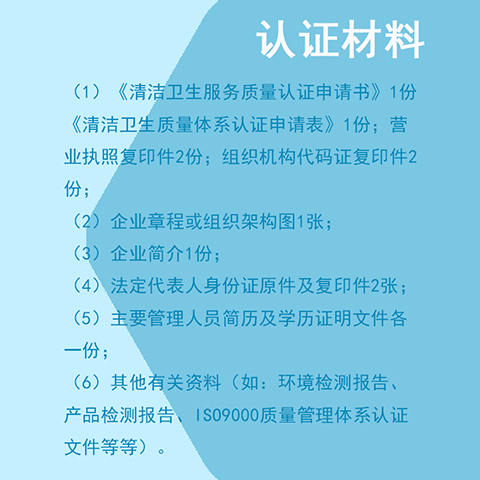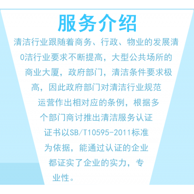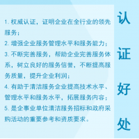 · 可以作為清潔服務(wù)的大型企事業(yè)單位招投標(biāo)、采購等活動的重要參考和資質(zhì)要求;