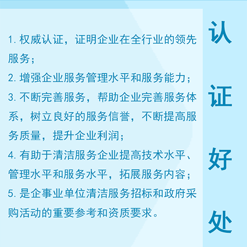 · 可以促進(jìn)清潔行業(yè)的有序競爭和發(fā)展,增強(qiáng)行業(yè)影響力和社會責(zé)任感。