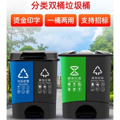 小型環(huán)衛(wèi)垃圾桶 40L分類雙桶垃圾桶 腳踏式垃圾桶