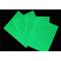 夜光板是用高亮夜光粉與PVC樹脂材料混合后制作完成是種硬質的發光板材,可以切割成不同的規格,可以在表面進行絲網印刷,制作成各種蓄光自發光導向標示系統。目前這種板主要出口到歐美等市場制作的消防標示符合歐盟標準。材料具有一定的阻燃性能。