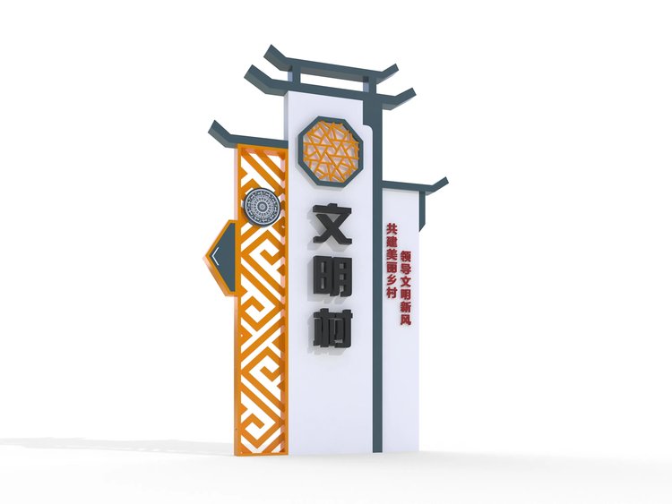 從目前村牌村標(biāo)安裝使用的效果來看,地方特色鮮明,藝術(shù)化形態(tài)突出的村牌村標(biāo)是功能與美觀相結(jié)合的一種戶外大型標(biāo)識(shí),是現(xiàn)代農(nóng)村中一道靚麗的風(fēng)景線。現(xiàn)代新農(nóng)村規(guī)劃,建筑設(shè)計(jì),環(huán)境營(yíng)造中,可以將農(nóng)村村牌村標(biāo)設(shè)計(jì),作為整體環(huán)境的一項(xiàng)重要因素加以考慮。