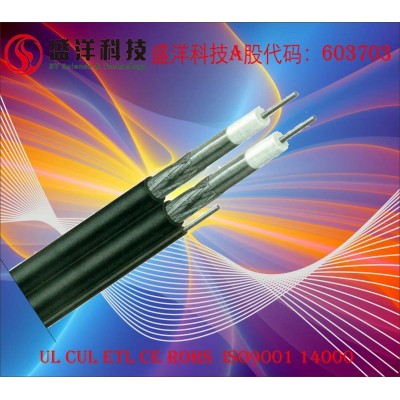 盛洋科技供應高品質兩層屏蔽雙RG6加自承鋼絲同軸電纜
