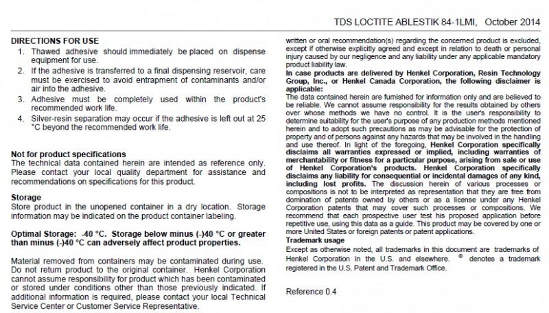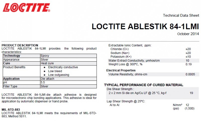 漢高芯片封裝導電膠LOCTITE ABLESTIK 84-1LMI