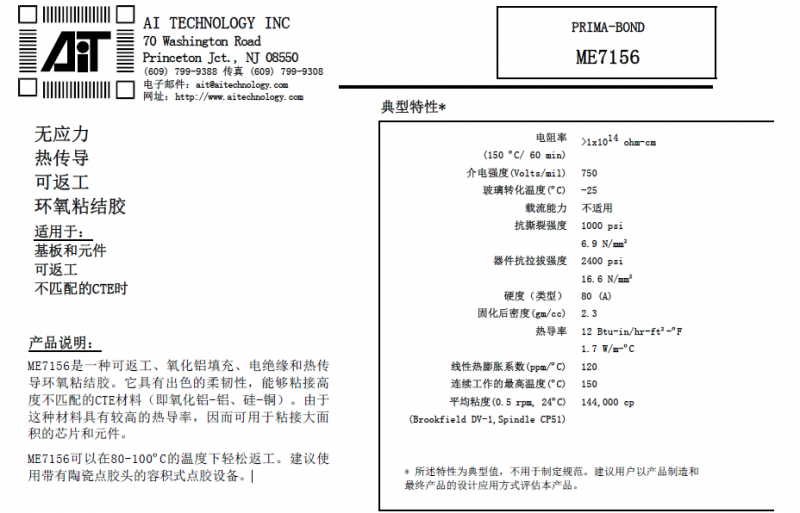 美國(guó)AiT柔性環(huán)氧膠ME7156低應(yīng)力可返工環(huán)氧膠