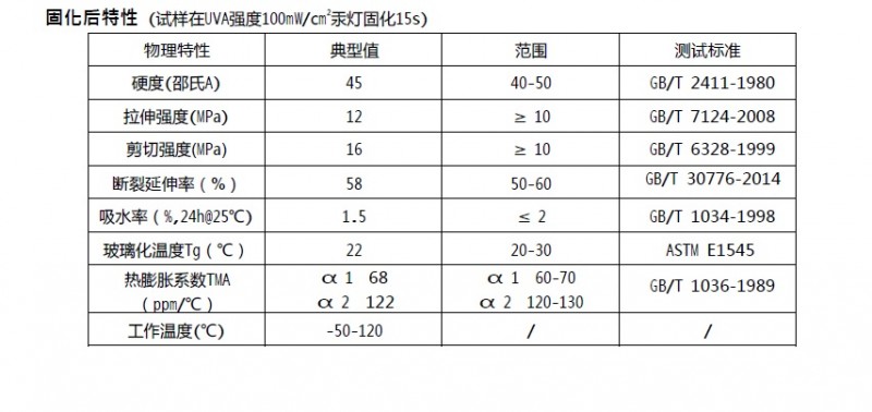 要求是低粘度,150cps,折射率1.56左右,透明,質軟,硬度在shore D  10左右,不能與pc 發生反應,老化時間是50° 環境下,40小時,替代諾蘭NORLAND UV NOA 71