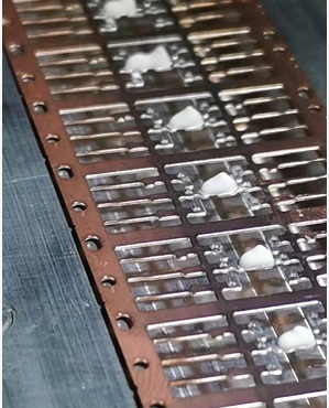 反光率高,跟環氧塑封料粘接好,有一定流淌性,能夠將芯片全部裹住