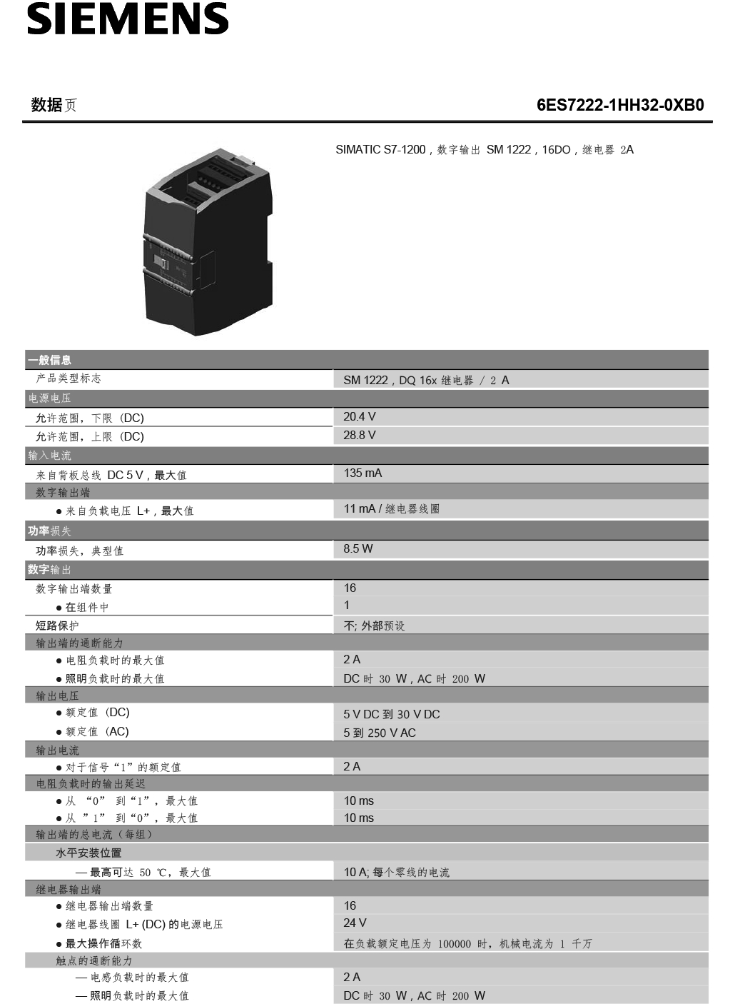 型號 6ES7222-1HH32-0XB0