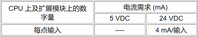 表上及擴展模塊上的數字量輸入所消耗的電流