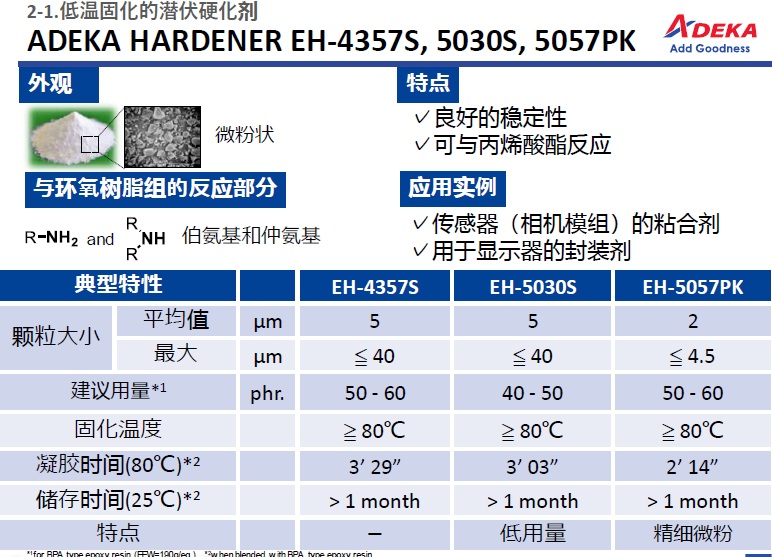 ADEKA 艾迪科低溫固化潛伏硬化劑固化劑 EH-4357S,5030S,5057PK