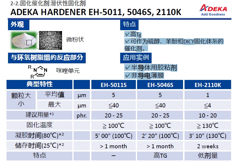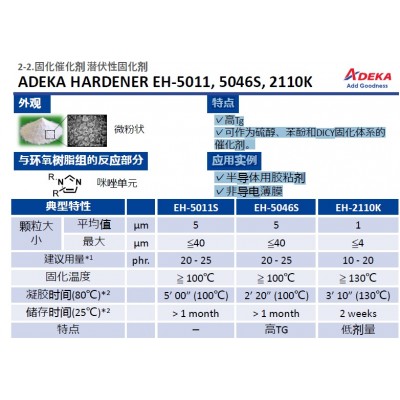 ADEKA 艾迪科高Tg固化催化劑潛伏性固化劑 EH-5011, 5046S, 2110K