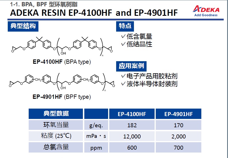 艾迪科BPA, BPF 型環氧樹脂EP-4100HF EP-4901HF
