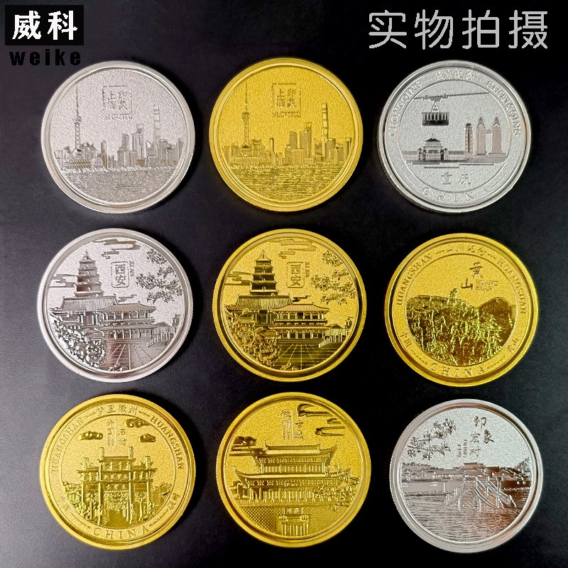 金屬城市印象旅游地標景點廣場雕塑吉祥物留念中國風國潮寺廟神像紀念章定制
