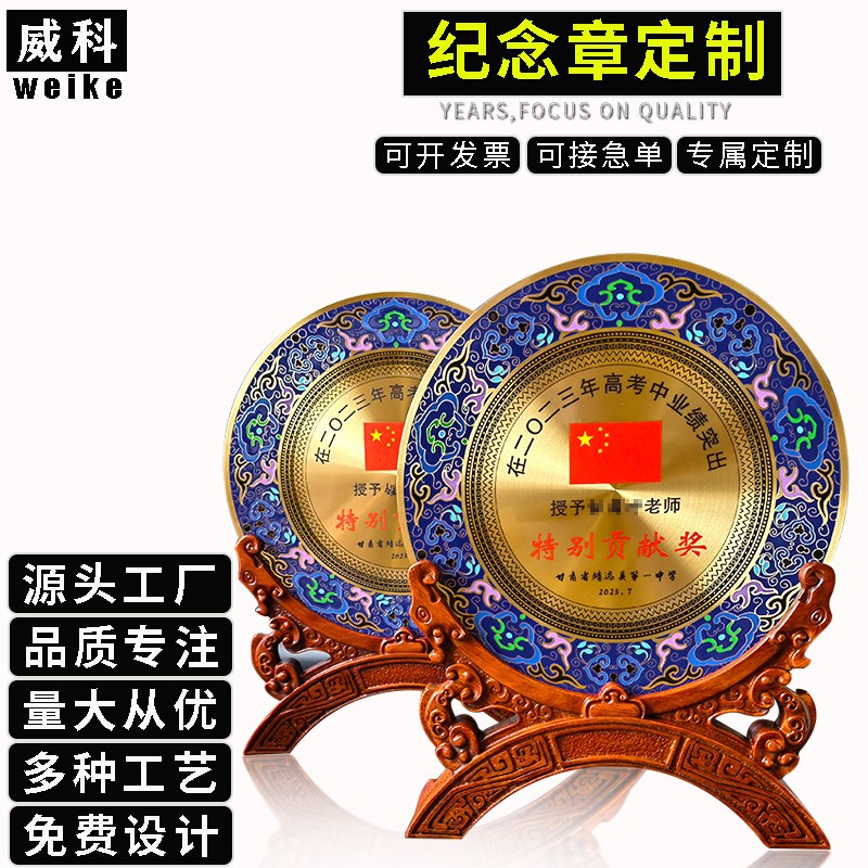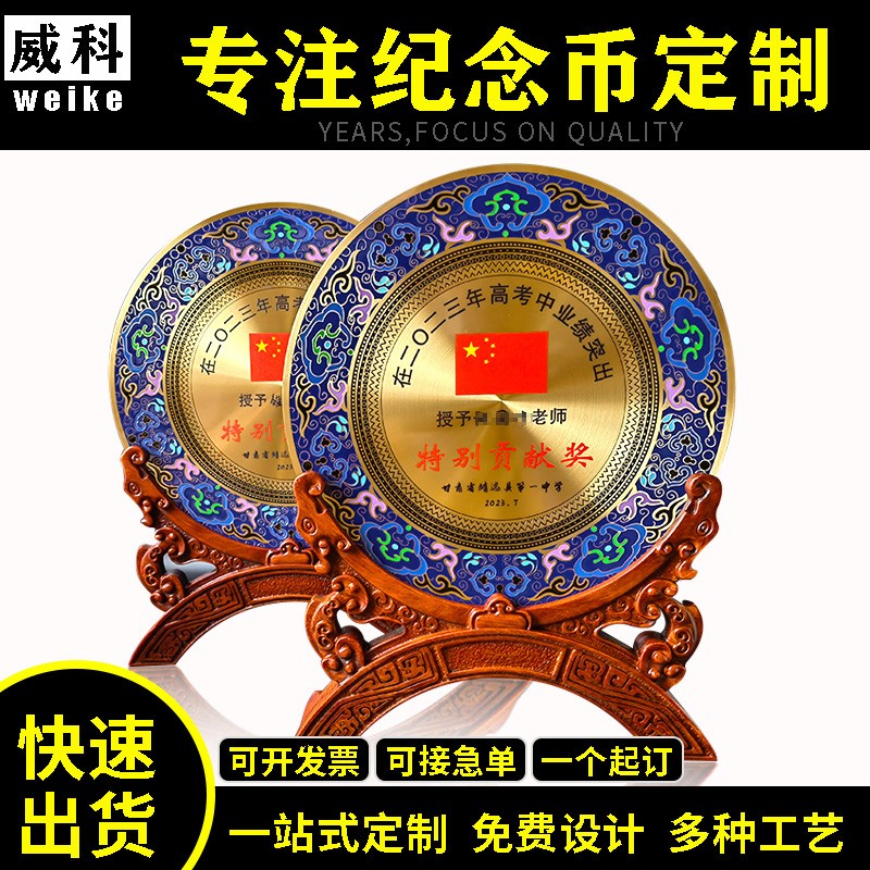 金屬純銅教師退休公司員工入職周年嘉獎榮譽福利留念聚會會議合作勵志紀念盤獎盤