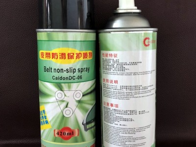 CaidonDC-06是一種新型皮帶、傳動帶保護噴劑消除皮帶運轉噪音,使帶保持自然柔軟富彈性、不皺縮,增強傳動馬力能除去拋光面,防止光面所產生的滑行移動現象;有效防止皮帶的干燥,開裂和氧化,制止皮帶運轉過程中發生的噪音,提高皮帶傳動率
