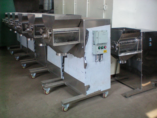 粒度均勻,控制簡單,該機是將潮濕粉末混合物,在旋轉(zhuǎn)滾筒的正,反旋轉(zhuǎn)作用下強制性通過篩網(wǎng)而制成顆粒。