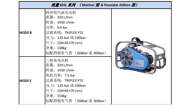 MARINER 320- 力量型適用于大量的呼吸空氣需求 320升/分鐘